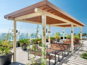 Для любителей спорта на крыше имеется крытая спортивная площадка и тренажеры, для детей игровая зона. Крыша огорожена стеклянными прочными стенами: ваши дети будут в безопасности. Для посетителей бассейна также есть лежанки и душевые. В здании есть платный тренажерный зал.