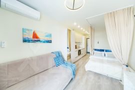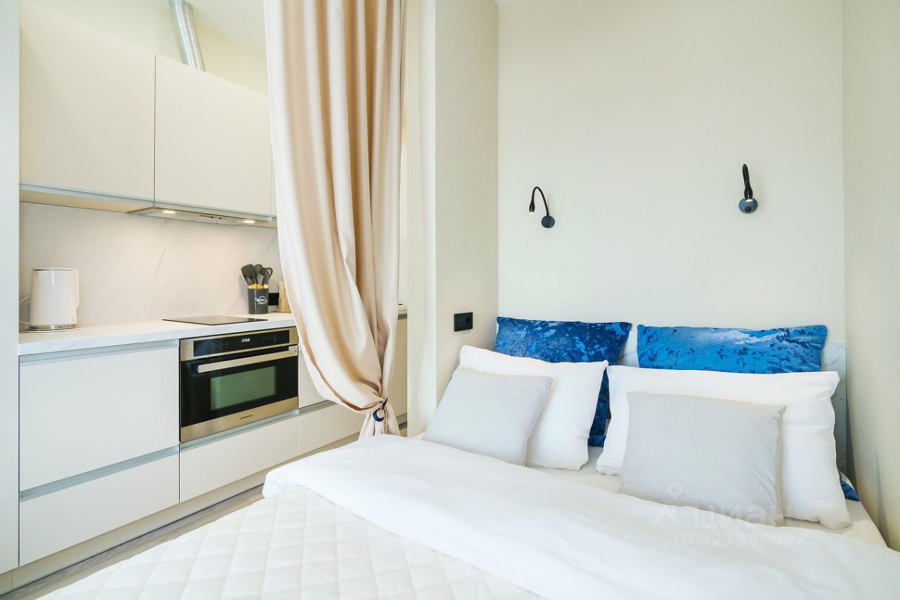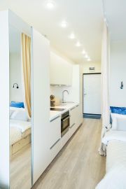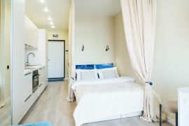 Просторная светлая однокомнатная студия с кухонной зоной