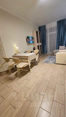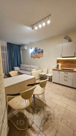 В большой комнате-студии расположена обеденная зона с видом на море, выходом на балкон, раскладной диван и телевизор. Приветственный набор: кофе, чай и прочие приятные мелочи.