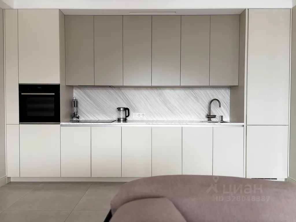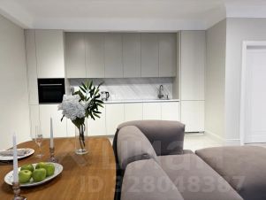 Кухня-гостиная: два дивана для отдыха, большой обеденный стол, SMART-телевизор. Встроенная техника премиум-класса, полный набор посуды и кухонных принадлежностей.