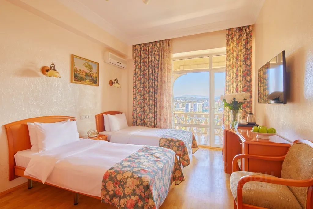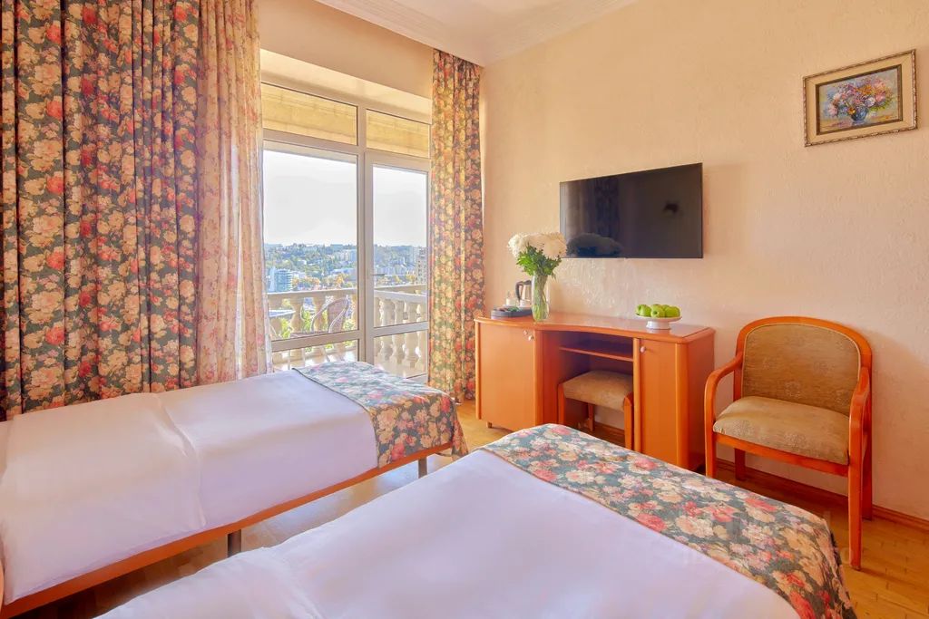 Уютный номер на двоих площадью 20 м2 отлично подходит для бизнес-поездки или отдыха. Прекрасные виды с балкона открываются на центр Сочи, горы и/или море. Бизнес-стандарт оснащен двумя раздельными кроватями, прикроватной тумбой и шкаф-купе. В номере есть всё необходимое для создания благоприятной атмосферы отдыха после активного дня для восстановления сил. Ванная комната оснащена душем с полным набором качественной косметической продукции.