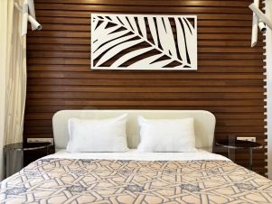 • Спальня: удобная кровать с высоким ортопедическим матрасом, вместительный шкаф, панорамное окно с видом на море.