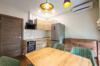 • оснащение: 2 кондиционера, холодильник, телевизор, проведен Wi-fi, шкаф-купе, теплый пол с возможностью регулировки, кухонный гарнитур, кухонная техника - плита, вытяжка, духовка, чайник, блендер, посуда и другая кух. утварь,