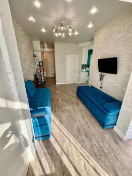 В квартире отдельная спальня с кроватью 180 см, раскладной диван в гостиной, отдельная кухня с плитой, микроволновкой и всеми принадлежностями.