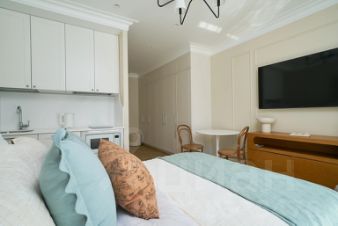 Номер уютно обставлен и оснащён необходимым, чтобы отдохнуть после долгого и насыщенного дня. Имеются телевизор и халат. Перечисленные услуги есть не во всех номерах.
