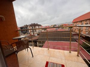 Гостиная-Кухня: Раскладной двухместный диван. Постельные принадлежности (подушки, одеяла, постельное белье). Стол и стулья. Кондиционер. Вся необходимая посуда. Электрический чайник. Микроволновая печь. Электроплита. Духовка. Вытяжка. Холодильник.