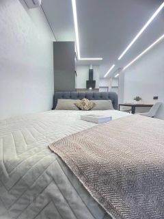• Установлена 2х-спальная кровать с подъемным механизмом, встроенный шкаф.