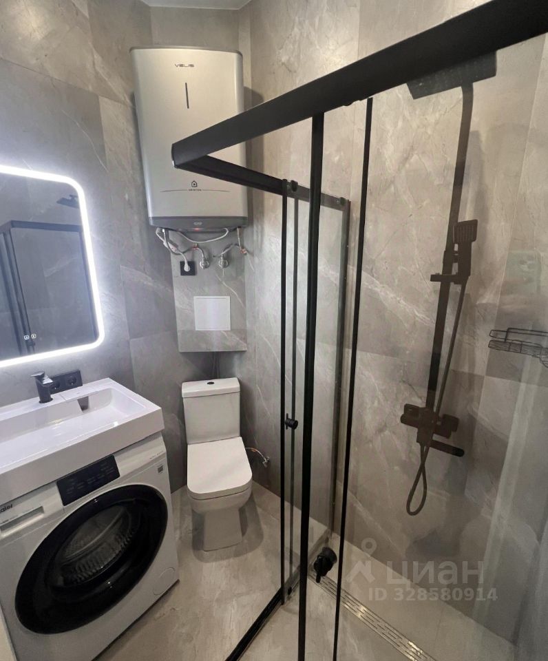 В студии выполнен дизайнерский ремонт, который создаёт атмосферу уюта и современности. Функциональная планировка позволяет удобно разместить мебель как в зоне отдыха, так и на кухне. В квартире есть все необходимое для комфортного проживания: кондиционер, холодильник и стиральная машина. Санузел совмещенный, оборудован современной душевой кабиной.