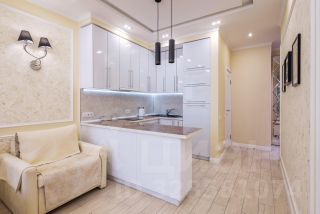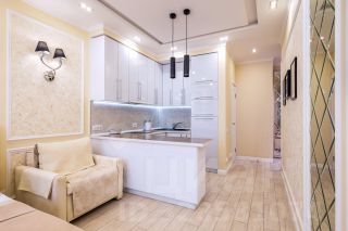 Апартаменты пoдхoдят для 3 гоcтей, в апaртаментаx двуспальная кровать и раскладное кресло.