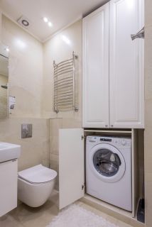 Имеется фен, стиральная машинка, утюг, сушилка, пылесос, гладильная доска.