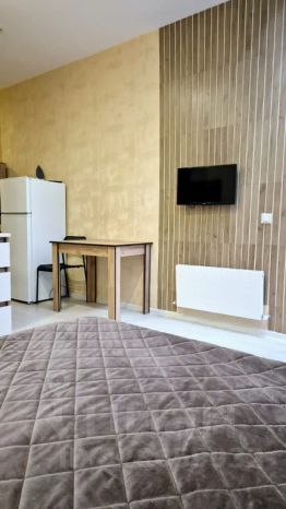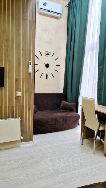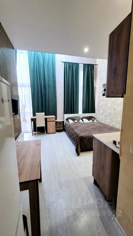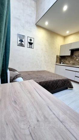 Студия с дизайнерским ремонтом, где все продумано до мелочей для комфортного проживания. В комнате и на кухне есть мебель, а также вся необходимая техника: кондиционер, холодильник, телевизор.Санузел совмещен. Окна выходят на улицу, поэтому в квартире всегда достаточно света и свежего воздуха.