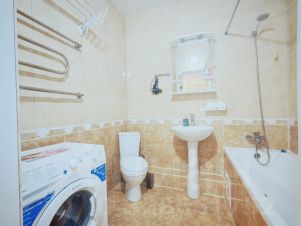 Что доступно гостю: небольшая, но функциональная кухня со всем необходимым для приготовления пищи, двуспальная кровать, и диван, который при необходимости станет дополнительным спальным местом для двух человек. Техника: чайник, плита стеклокерамика, холодильник, телевизор, утюг, пылесос, кондиционер, фен.