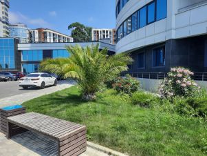 На территории комплекса бесплатная парковка, скамейки для отдыха, пальмы, цветы, детские площадки, спортивные площадки, магазины, интернет-магазины (Озон, WB, Яндекс Маркет), СДЭК, Перекрёсток, Стройхозмаркет, аптека.