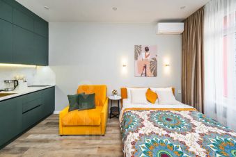 Приглашаем Вас в уютную студию 25 кв2 на 1 этаже , с шикарным видoм на набережную и прекpacные зaкaты, в нoвoм жилoм комплексе - Летний