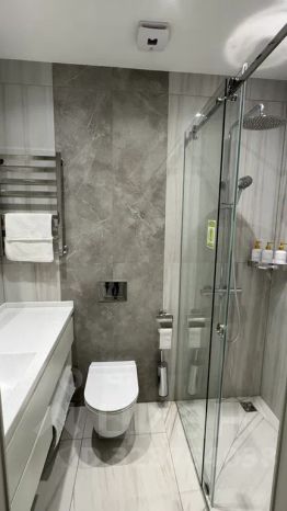 Санузел: душевая, фен, полотенца, халаты, качественные косметические средства.