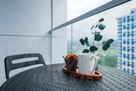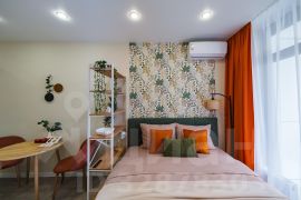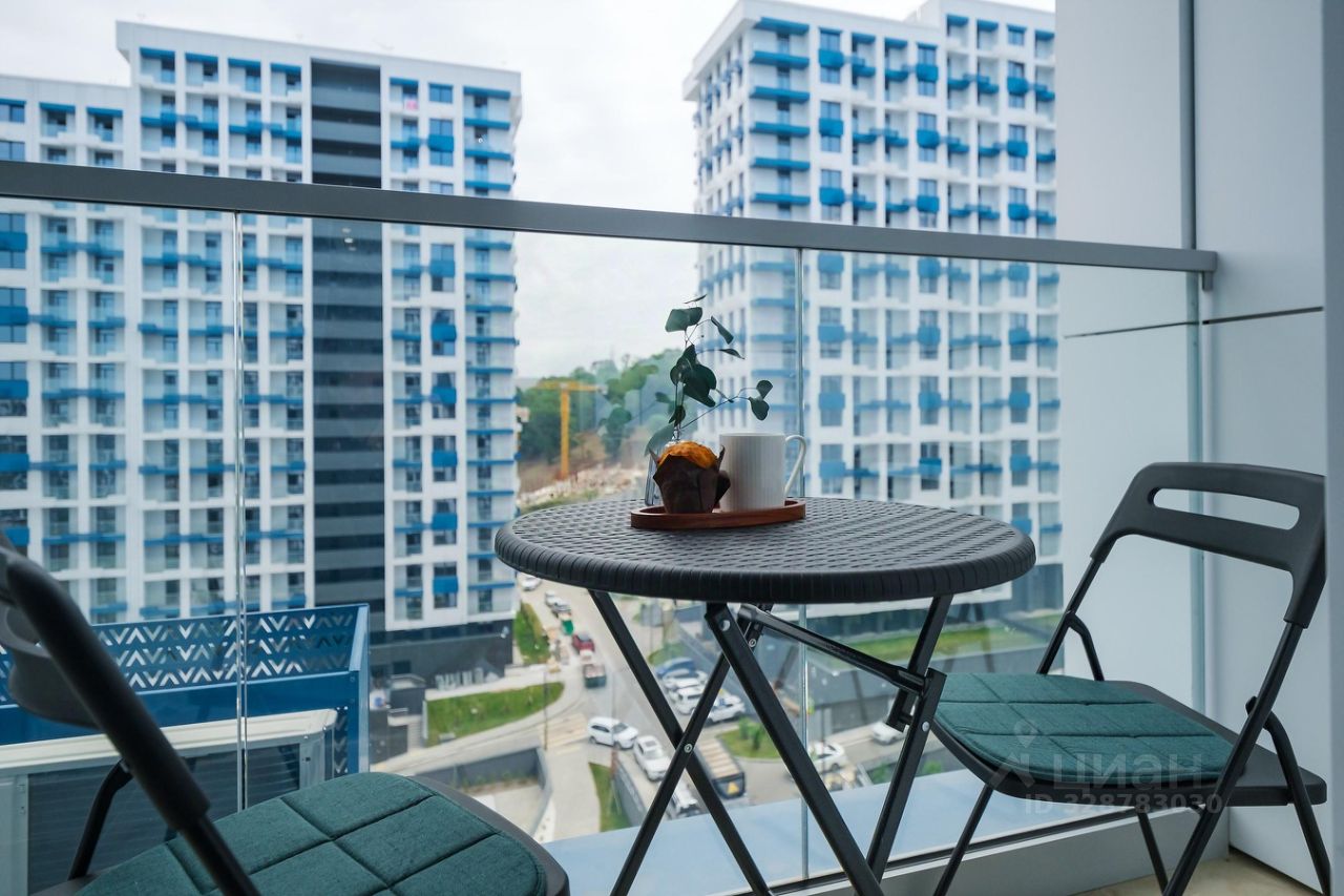 Просторная светлая студия с уютным балконом, идеальным для утреннего кофе или вечернего отдыха.