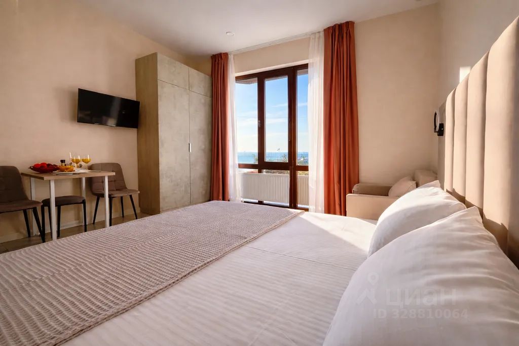 - Просторная студия с зоной отдыха, где можно наслаждаться свежим морским воздухом.