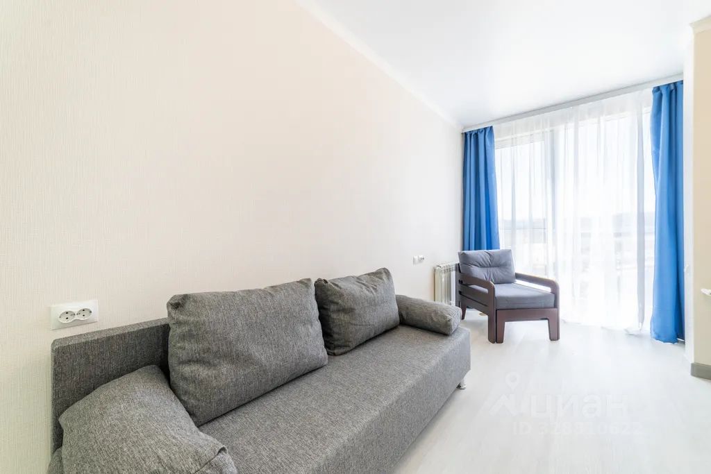 Вместимость до 3 гостей: просторная студия с раскладным диваном и односпальным креслом, совмещённый санузел, панорамные окна