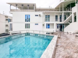 Гостевой дом "White House" расположен на второй береговой линии (расстояние от моря 300 метров, 5 мин.), в центре курортной зоны горный воздух, поселка Лоо/города Сочи. Местоположение по отношению к центру курорта 100 метров, в пешей доступности от аквапарка, дельфинария и курортных развлечений. Рядом магазины пятерочка, красно белое, магнит, рынок, кафе, столовые, аптеки. В четырёхместном номере люкс со всеми удобствами есть двухспальная кровать или двуспальный диван, балкон, кабельное тв, wi-fi, холодильник, душ, туалет, кондиционер, шкаф, летняя мебель. На территории открытый подогреваемый бассейн, кухня, мини бар, экскурсионная стойка, зона барбекю, парковка. На всей территории бесплатный wi-fi.