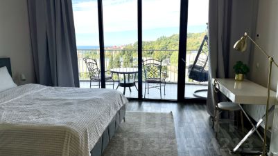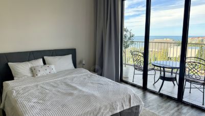 большой просторный балкон, 7 этаж, потрясающий вид на море и горы одновременно (сторона Лазурки),