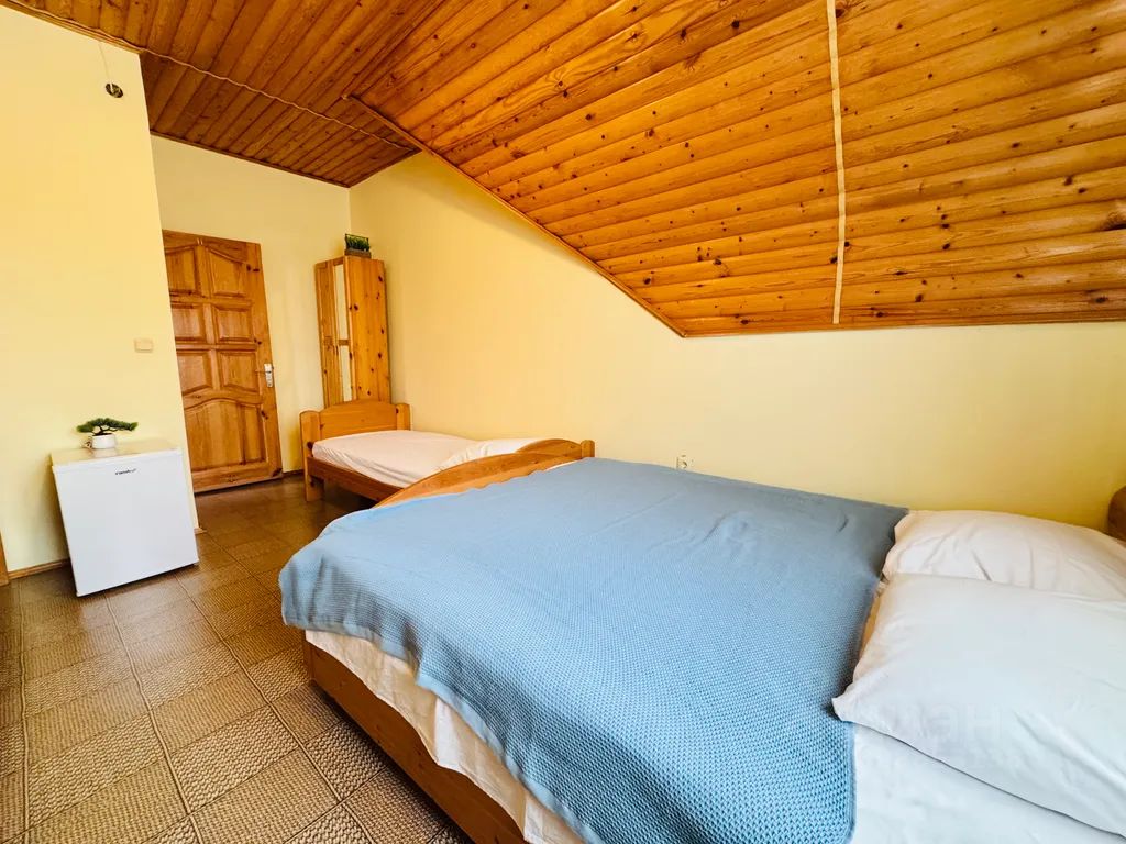 В комнате ортопедические новые матрасы и топеры, на которых Вы будете отдыхать как дома. Белоснежное постельное и полотенца.А так же шкаф для одежды, кондиционер, холодильник, обеденный стол, электрический чайник и wi-fi.