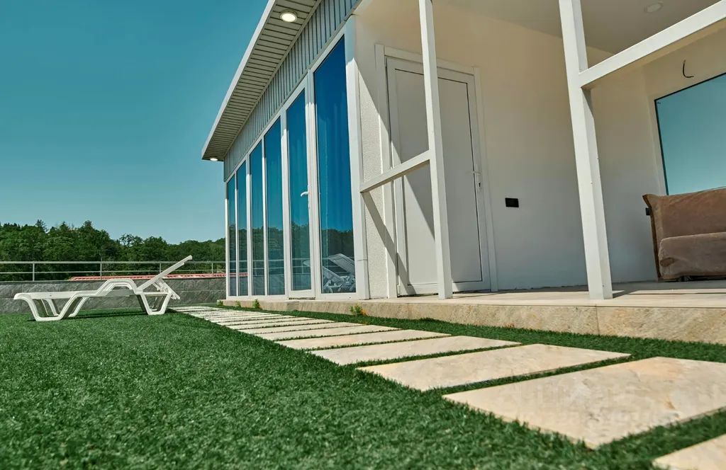 На территории мангальная зона, кухня для самостоятельной готовки, теплый бассейн, террасы, навесы, столовая.