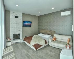 Гостевой дом "Radisson Rodina" расположен на второй береговой линии (расстояние от моря 300 метров, 5 мин.), в центре курортной зоны "Горный воздух" поселка Лоо/города Сочи. Местоположение по отношению к центру курорта 100 метров, в пешей доступности от аквапарка, дельфинария и курортных развлечений. Рядом магазины "Пятерочка", "Красно-белое", "Магнит", рынок, кафе, столовые, аптеки. Пентхаус находится на крыше с видом на море, вместимость до 5 человек, 4 основных места, одно дополнительное. В номере есть двухспальная кровать и двуспальный диван, доп. место, кабельное ТВ, Wi-Fi, холодильник, кухня, оборудованная под ключ со всем необходимым, душ, туалет, стиральная машинка, кондиционер, шкаф. Терраса с летней мебелью и шикарным видом на город и море.