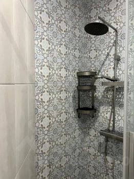Совмещённый санузел с душевой, стиральной машиной, феном.