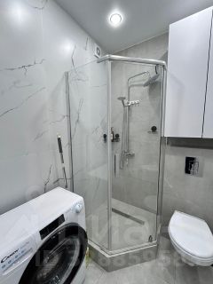 Совмещённый санузел с душевой кабиной, стиральной машиной, феном.