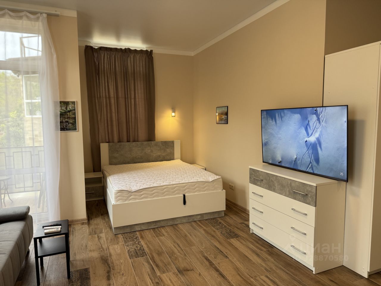 Сдается без комиссии просторная студия с отличным ремонтом и новой мебелью! В квартире имеется все необходимое для комфортного проживания! Встроенный холодильник, телевизор, стиральная машина на 9 кг, большая кровать с новым ортопедическим матрасом, удобный раздвигающийся диван, много мест для хранения вашей одежды! Посуда, полотенца, постельные принадлежности. ВАЖНО: студия ни разу не сдавалась, вся мебель и техника новая! Удачное расположение , дом находится в тихом месте, есть места для прогулок, 15 минут ходьбы до моря и до электрички, что позволяет вам без пробок добраться в любую точку города! В шаговой доступности пункты выдачи"Озон" и "ВБ", магазины, автобусная остановка. Квартира сдается некурящим и без животных на длительный срок. Цена на лето НЕ МЕНЯЕТСЯ.