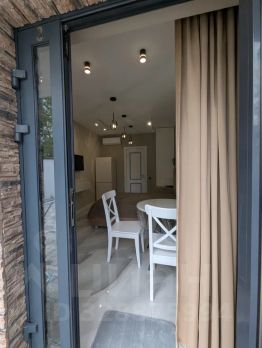 Апартаменты на первой береговой линии, до моря две минуты пешком. В пешей доступности три общественных пляжа, магазины, кафе, набережная реки Псахе, детские площадки, остановка общественного транспорта. До центра города 15 минут на маршрутке или машине. Номер рассчитан на двух взрослых и одного ребёнка.
