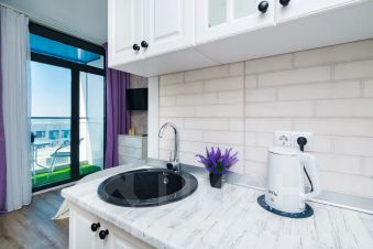 Квартира расположена в ЖК "Кислород". Это замечательный семейный комплекс, множество детских, спортивных площадок, парковка. Недалёко всё самое необходимое: аптеки, пункты выдачи, кафе, ресторанчики, остановки общественного транспорта. Недалеко до моря, буквально 15-20 минут пешком (на машине, конечно же, быстрее, примерно 6-7 минут). Вокзал, ж/д вокзал.