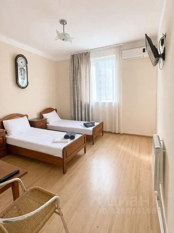 - 2 спальни (двуспальная кровать с возможностью разделить на 2 односпальные, во второй комнате 3 односпальные кровати)