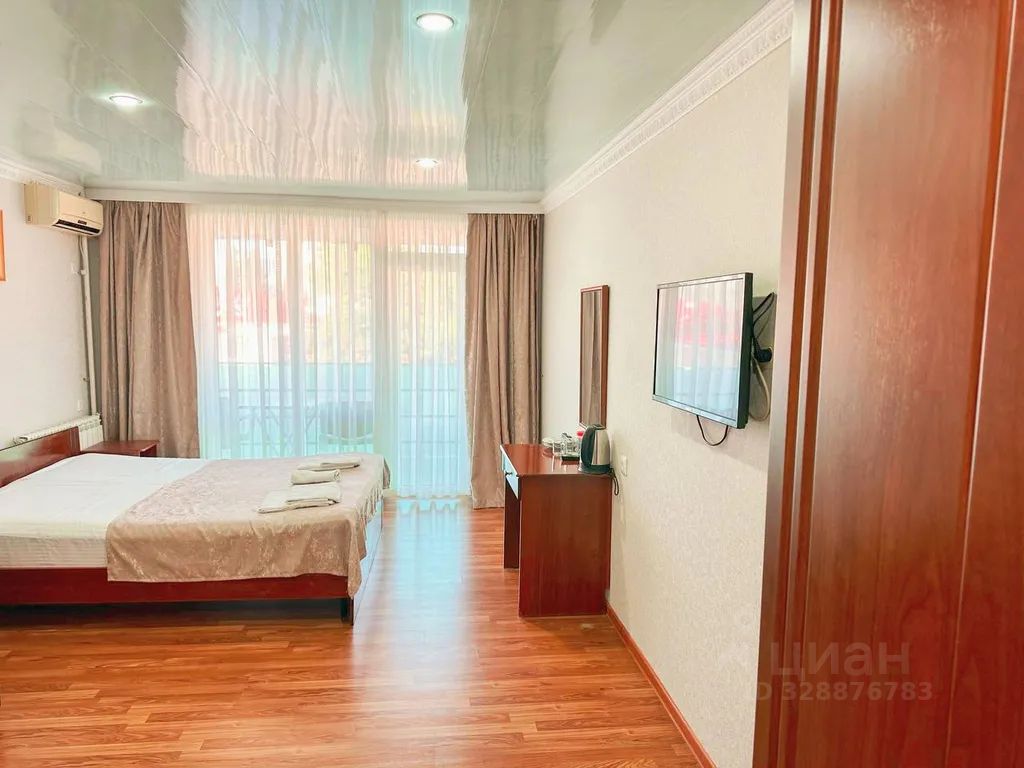 Размещение: 2 гостя на основных местах + 2 гостя на дополнительном месте (диван-кровать 140200 см). Количество комнат: 1 Площадь номера: 25 м2 В номере: двуспальная кровать, двуспальный диван-кровать, кабельное ТВ, холодильник, кондиционер, плательный шкаф, трюмо с зеркалом. В ванной комнате: ванна, раковина, унитаз, зеркало, полотенца, туалетные принадлежности. На балконе: летняя мебель. Вид на местные окрестности.