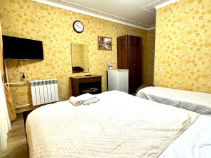 Количество комнат: 1. Площадь номера: 20 м2. В номере: двуспальная и односпальная кровати, кабельное ТВ, холодильник, кондиционер, плательный шкаф, трюмо с зеркалом.