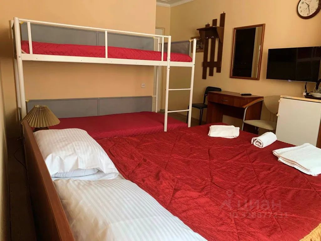 Размещение: 2 гостя на основных местах + 2 гостя на двухъярусную кровать. Количество комнат: 1. Площадь номера: 22 м2. В номере: двуспальная кровать, двухъярусная кровать, кабельное ТВ, холодильник, кондиционер, плательный шкаф, трюмо с зеркалом.