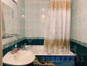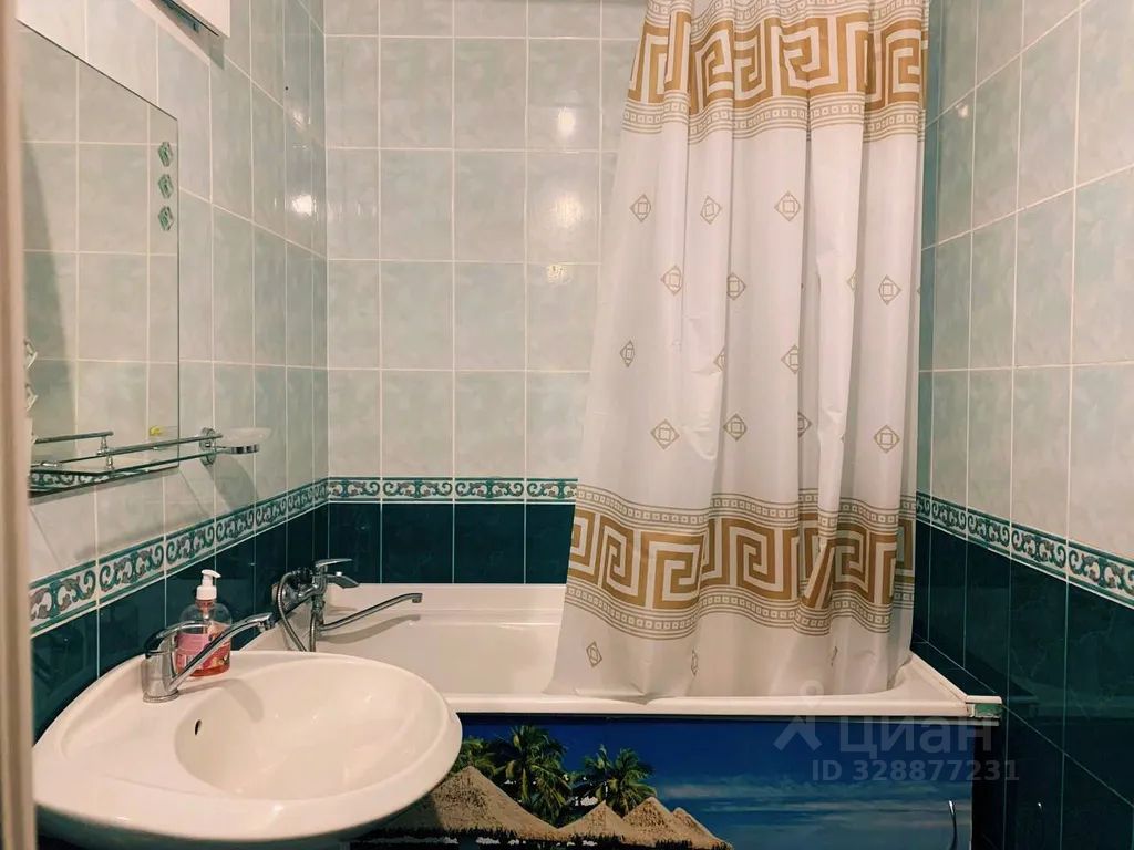 В ванной комнате: ванна, раковина, унитаз, зеркало, полотенца, туалетные принадлежности.