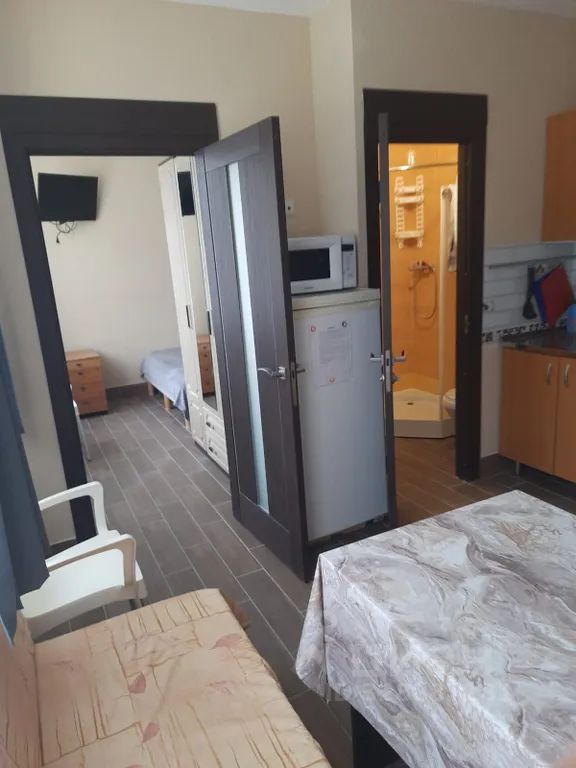 Апартаменты в 5 км от моря для автопутешественников в селе адлера на 3-4 человека. Кухня-гостиная с односпальным диваном, спальня с двуспальной кроватью, можно поставить раскладушку для четвёртого человека.
