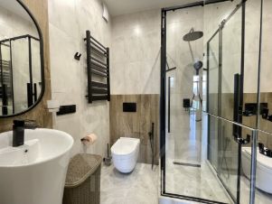 Современный стильный ремонт, мебель и техника. Телевизор Smart TV и кондиционер в каждой комнате, wi-fi. Панорамные окна, на балконе имеется мебель для приятного время препровождения. Много мест для хранения вещей.