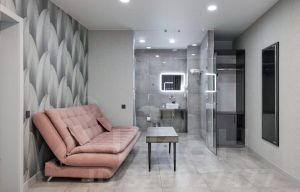 В четырёхместном номере люкс со всеми удобствами есть двухспальная кровать и двухспальный диван, балкон, кабельное тв, wi-fi, холодильник, хрустальный душ, туалет, кондиционер, шкаф, летняя мебель.