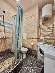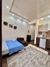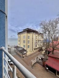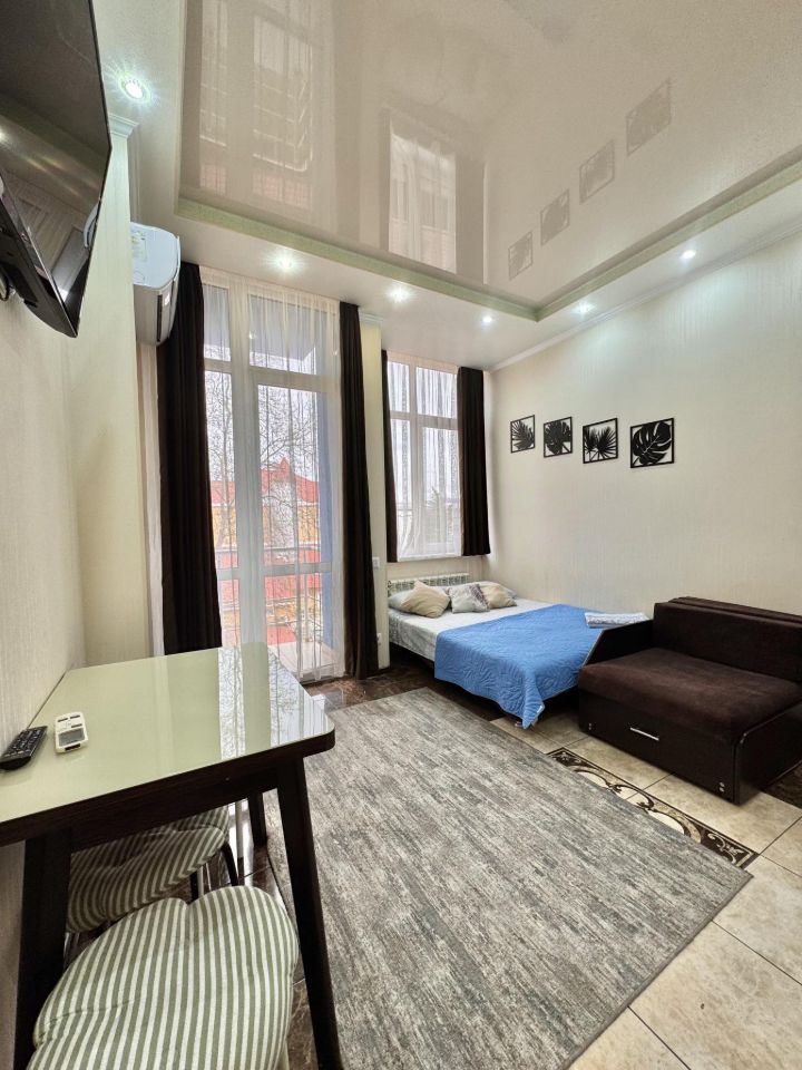 Студия находится в жилом комплексе "Дельфин у моря", который расположен в центре Адлера, в пешей доступности от центрального пляжа.