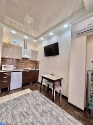 В квартире есть все, что нужно для комфортного проживания: раскладные кресло и диван, постельное белье и полотенца, Wi-Fi, кондиционер, полностью оборудованная кухня с обеденной зоной, телевизор, собственная ванная комната с душем и феном, микроволновая печь, холодильник, плита и чайник.