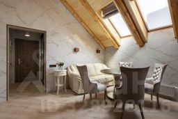 Просторный номер повышенного уровня комфорта с балконом с видом на горы. Номер оборудован индивидуальной системой вентиляции воздуха, феном, телевизором с плазменной панелью, рабочим столом, электронным сейфом. Для максимального удобства гостей все номера укомплектованы полотенцами, косметическими принадлежностями, чайной станцией, бутилированной водой, халатами и тапочками для каждого гостя. В номере может быть организовано проживание на дополнительном месте.