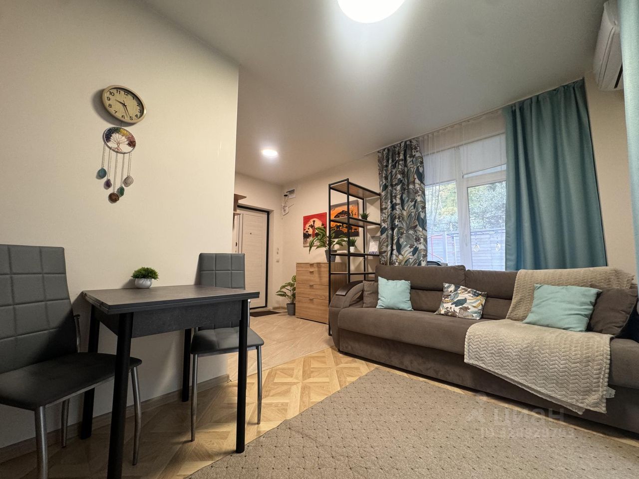 Новая светлая студия кухней-гостиной. Размещается 2-3 гостей. Диван- кровать с ортопедическим основанием. постельное белье и полотенца , телевизор со СМАРТ ТВ.