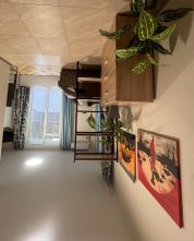 Полноценная кухня оборудованная всем необходимым: чайник, варочная панель, холодильник, микроволновая печь, набор посуды, кондиционер, столовые приборы, обеденная зона, выход на балкон.