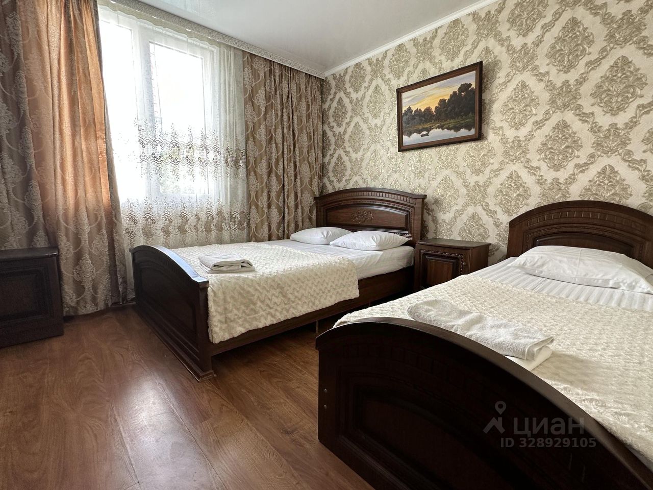 Уютная комната, площадью около 16 кв.м., с двумя односпальными или 2-спальной и односпальной кроватями, шкафом для одежды, столом и стульями, а также телевизором, холодильником и кондиционером. Санузел (душ и туалет) - в комнате, предоставляются туалетные принадлежности, полотенца. Кухня общего пользования.