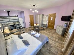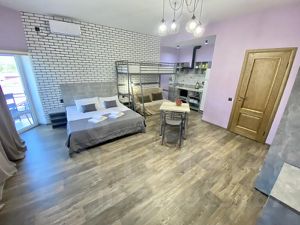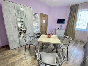 Апартамент выполнен в современном стиле "Loft". Оснащение позволяет чувствовать себя как в квартире, в доступе пользоваться полным функционалом кухни.