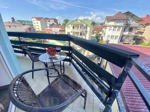 На балконе удобные уличные стульчики и столик. Так же с балкона открывается панорамный вид на горы, город и внутренний двор.