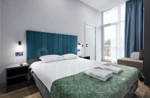В двухкомнатном четырёхместном номере люкс со всеми удобствами есть двухспальная кровать, двуспальный диван-кровать,есть возможность доставить доп. место, терраса, кабельное тв, wi-fi, холодильник, душ, туалет, кондиционер, шкаф, летняя мебель.