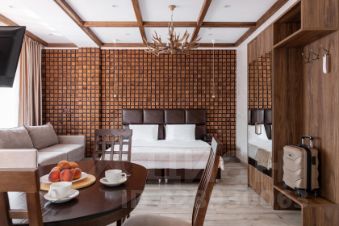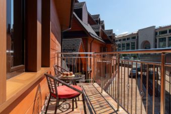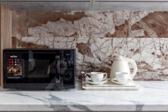 Светлые, большие и комфортабельные номера категории "Люкс Премиум" с мини-кухнями и просторными балконами. В номерах есть всё необходимое для комфортного проживания, включая микроволновую печь и посуду.